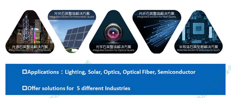 ● Diterapkan dalam pencahayaan, solar, optik, gentian optik, semikonduktor dan lain-lain;